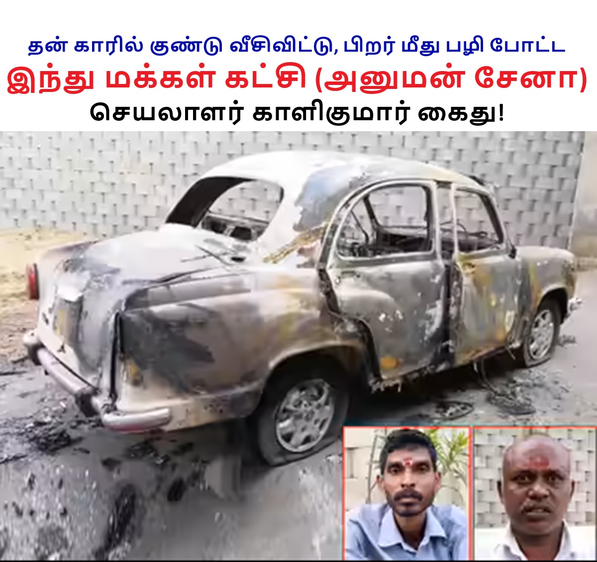 Further inquiries held with him revealed that Kalikumar used the help of his friend Gnanasekaran and a kin Ranjith to set the car ablaze.