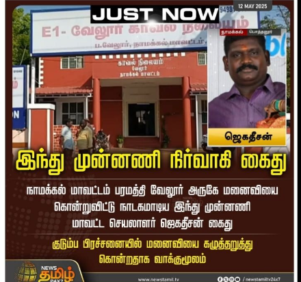நாமக்கல் (மே 12, 2025): நாமக்கல் மாவட்டம் பரமத்தி வேலூர் அருகேயுள்ள பொத்தனூரைச் சேர்ந்தவர் ஜெகதீசன் (40). இந்து முன்னணி மாவட்டச் செயலாளராக உள்ளார். இவரது மனைவி கீதா (36). இவர்களுக்கு 2 மகள்கள் உள்ளனர்.