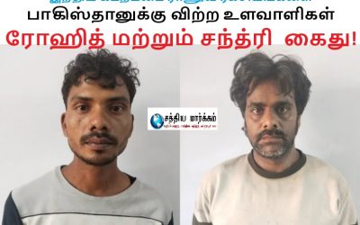 Share this:பெங்களூரு (21 நவம்பர், 2025): இந்தியாவின் கடற்படை கப்பல்கள் தொடர்பான ரகசிய ஆவணங்களை உளவு பார்த்து பாகிஸ்தானுக்கு அனுப்பிய உளவாளிகள் ரோஹித் (29) மற்றும் சந்த்ரி (37) ஆகிய இருவரும் கர்நாடகா-வில் உள்ள உடுப்பி காவல்துறையினரால் கைது செய்யப் பட்டுள்ளனர். கடந்த 18 மாதங்களாக, பாகிஸ்தான் உளவாளிகளாக இவர்கள் செயல்பட்டு வந்தது, காவல்துறை விசாரணையில் நிரூபணம் ஆகியுள்ளது. கேரள மாநிலத்தில் உள்ள கொச்சின் ராணுவ கப்பற்படைத் தளம் ஒன்றிய அரசின் கட்டுப்பாட்டில் இயங்கும் துறைமுகங்கள், கப்பல் … Continue reading இந்திய கடற்படை ராணுவ ரகசியங்களை பாகிஸ்தானுக்கு அளித்த உளவாளிகள் ரோஹித் மற்றும் சந்த்ரி கைது!